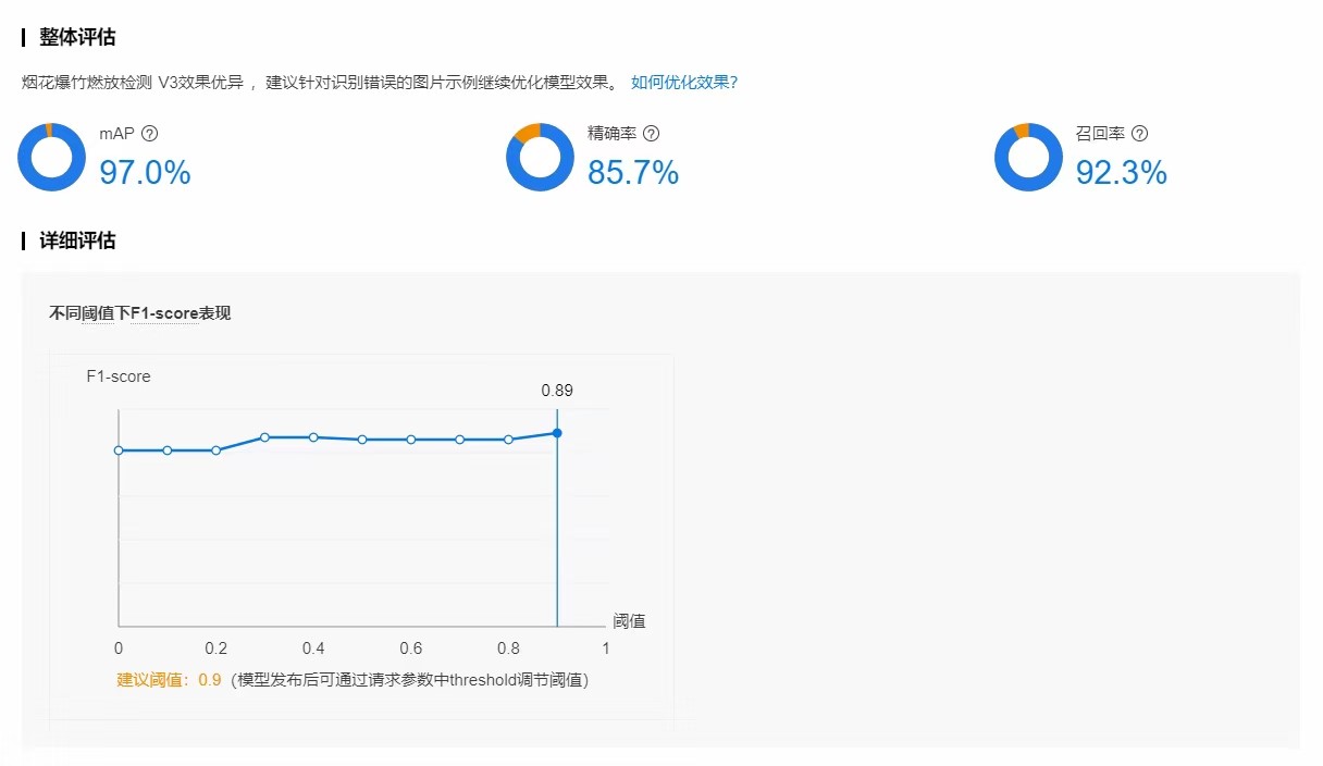 - 让百度云自动学习已经标注的数据,并查看生成的模型准确度是否符合要求。