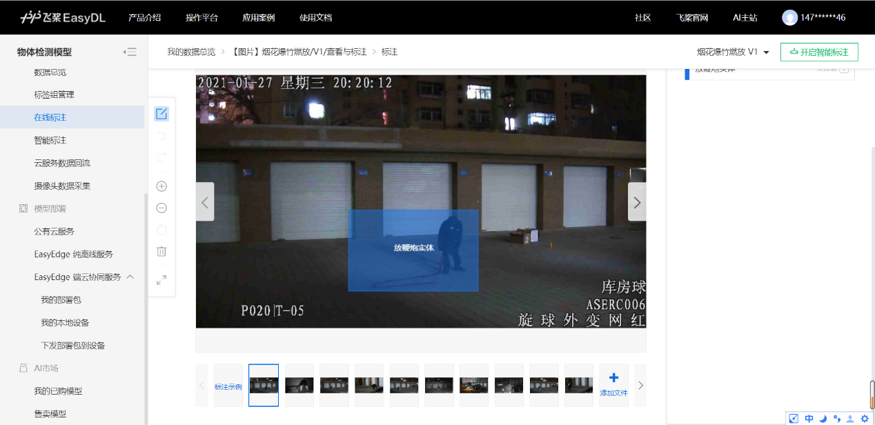 - 将图片导入百度云数据集,并对每张图片中的放鞭炮行为框选标注。