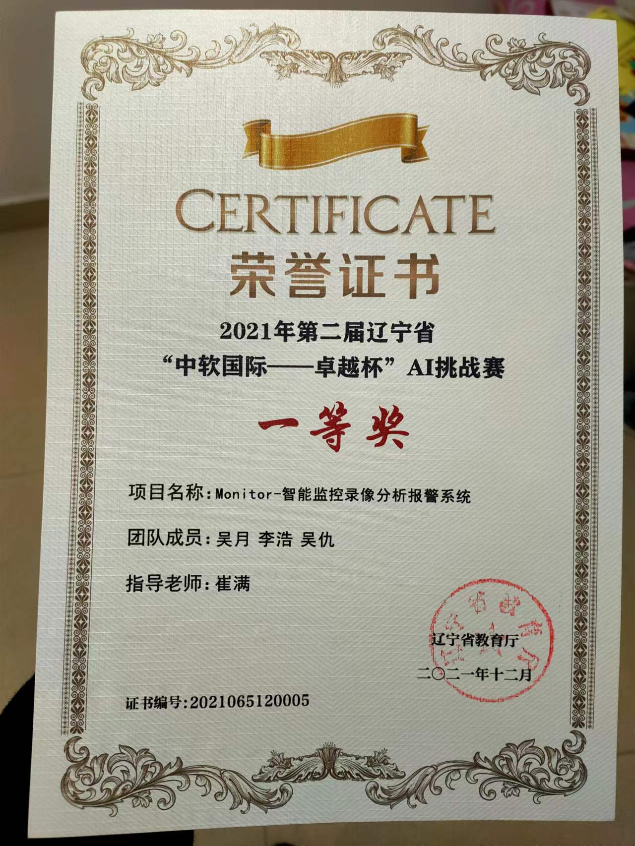 本项目在2021年12月年获得《2021年第二届辽宁省“中软国际-卓越杯”AI挑战赛》一等奖