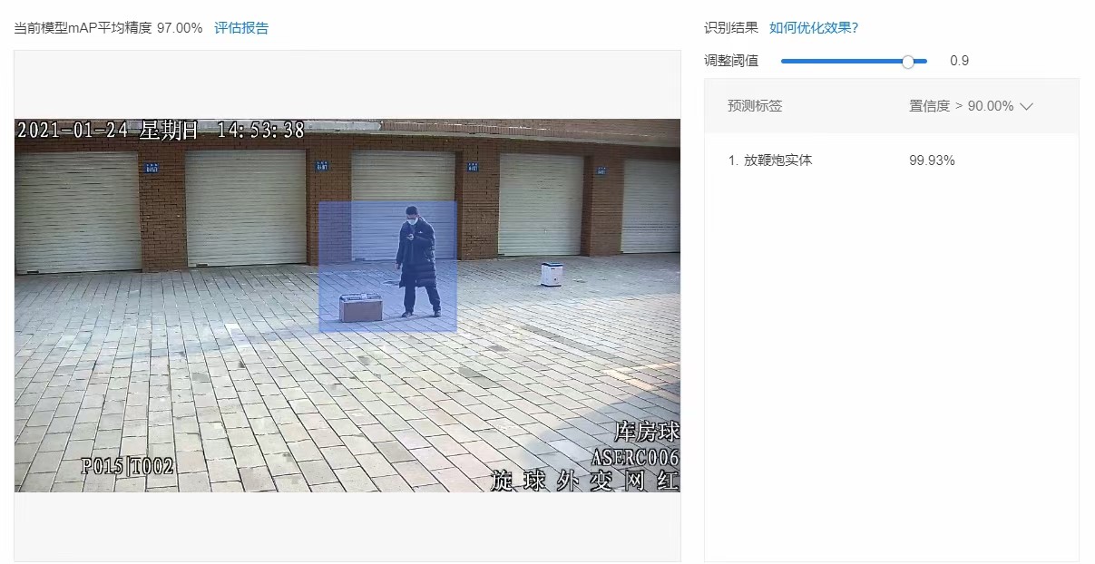 - 符合要求的模型进行实地测试,寻找若干名工作人员,手持各种鞭炮,摆出各种放鞭炮的动作,模拟放鞭炮的过程,并通过百度云反馈的识别结果,确认模型准确率是否在99%以上,如果有漏报,需要将误报的图片加入数据库中,进行下一轮迭代学习,不断重复以上过程,直到漏报和误报率符合要求,模型大体上训练完成。